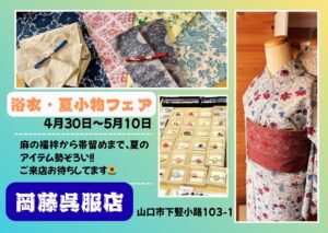 2026 年 4月30日から5月10日まで 「浴衣と夏小物フェア」を開催します。